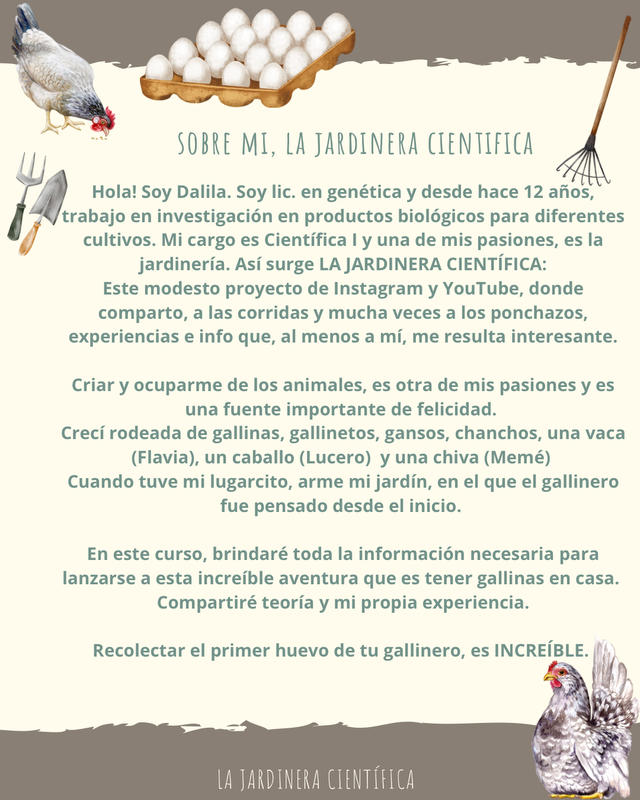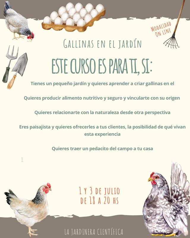 Este curso te brindara todo el conocimiento necesario, para que puedas criar gallinas en tu propio espacio. Es un curso básico, empezando desde cero, por lo que no es necesario contar con conocimientos previos.